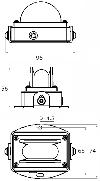 Монтажная площадка выполнена из нержавеющей стали, позволяет юстировать светильник по наклону.